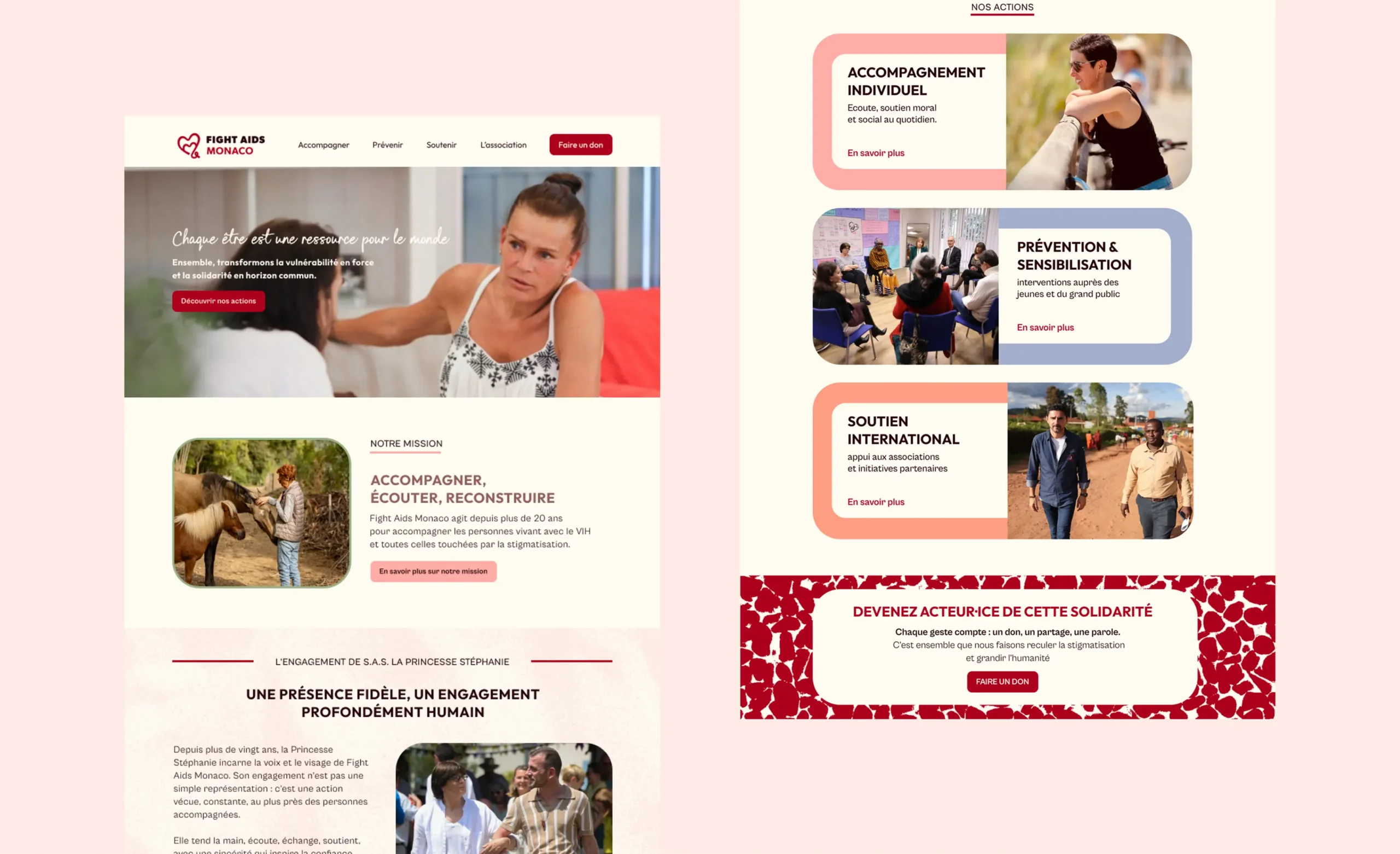 Un travail spécifique a également été mené sur Fight Aids France, fonds de dotation basé en France, afin d’en assurer une identification visuelle claire et distincte. Cette différenciation était essentielle pour éviter toute confusion juridique ou fiscale, tout en maintenant une cohérence d’ensemble au sein de l’écosystème Fight Aids