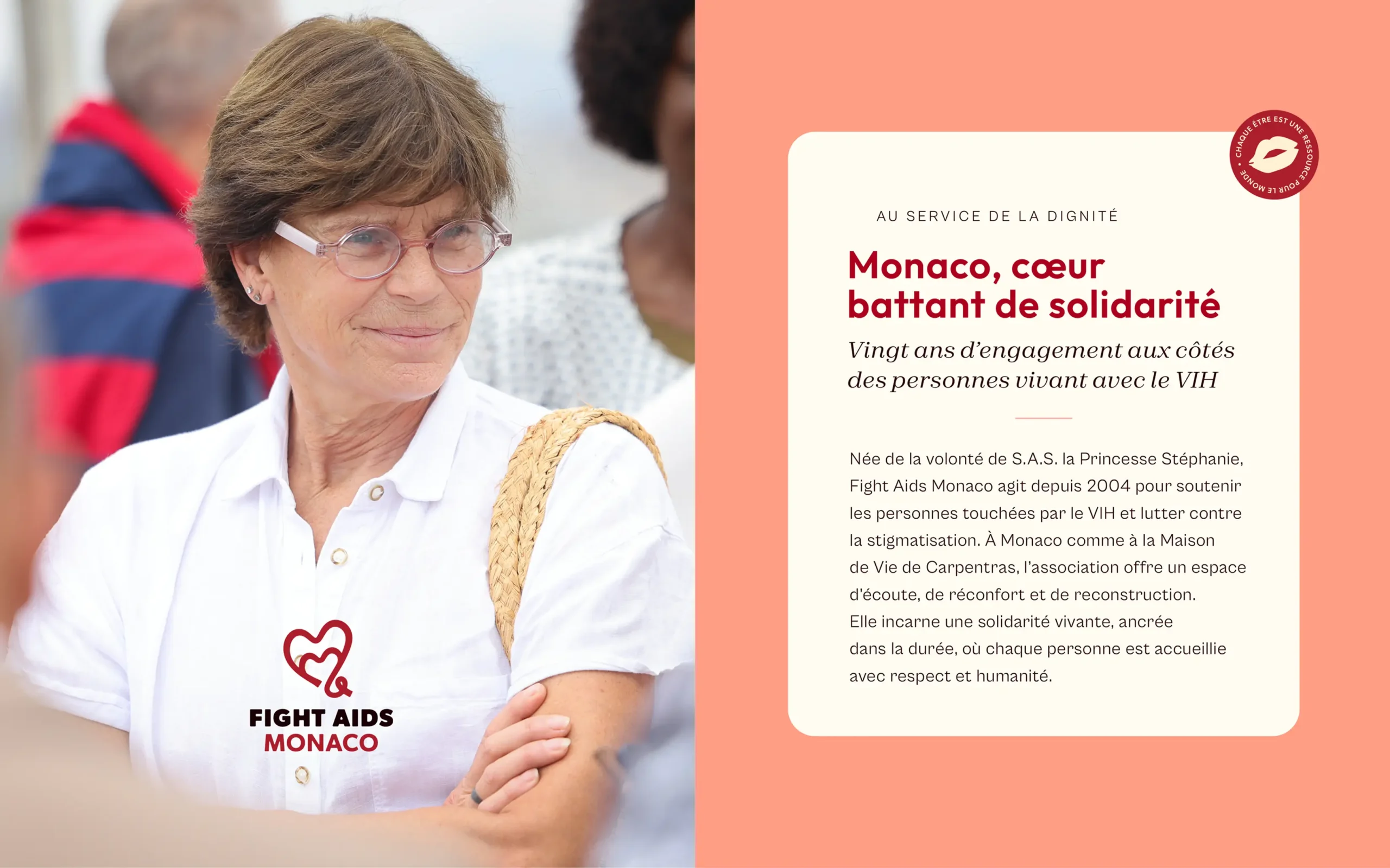Fondée en 2004 par S.A.S. la Princesse Stéphanie, Fight Aids Monaco accompagne les personnes vivant avec le VIH et celles confrontées à la stigmatisation, à travers un soutien moral, social et matériel favorisant le bien être et la reconstruction. Avec le temps, l’identité visuelle existante ne permettait plus de répondre pleinement aux besoins de l’association, ni d’accompagner l’évolution de sa communication et de ses enjeux. Dans ce contexte, l’association m’a confié la refonte de son identité visuelle, avec la volonté de dépasser les limites du logo historique tout en en respectant l’esprit, afin de soutenir ses ambitions et ses actions à venir.